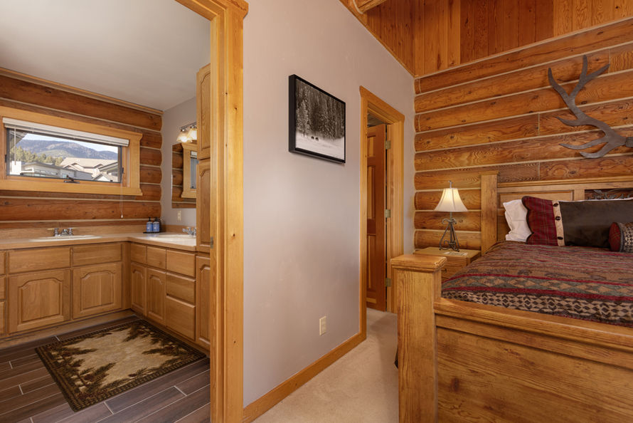 This stunning log cabin is beautifully appointed with a rustic Montana feel. The interior is updated for an even more enjoyable experience! Enjoy the beauty that surrounds, rest and relax in this cozy peaceful log cabin with stunning views, wood burning fireplaces to stay warm as you watch the snow fall. Open floor concept with logs and a country rustic feel with plenty of space for your family and friends to enjoy with an open concept kitchen for the family chef to be a part of the entertainment as they prepare a great meal for all to enjoy. A hot tub and gas grill is located on the south facing outdoor and expansive deck overlooking the stunning mountains. Located in close proximity to all that the meadow village has to offer from dining to shopping, concerts, golfing in the summer time, ice skating, skiing/ snowboarding, snowmobiling, fire pit gatherings and family fun in the winter time!.